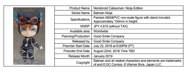 Catwoman From the Animated Film 'Ninja Batman' is Joining Good Smile Company's Nendoroid Series