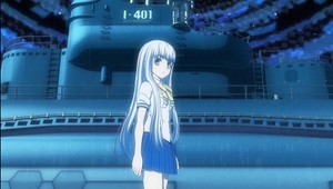 A ship that either has a cute girl as avatar or actually physically turns into a girl is hardly a new concept in anime, so having retrofitted versions of WW2-era ships use such avatars is not a stretch by anime standards. A special ship being crewed by a bunch of apparent oddballs is also a time-honored tradition in anime (it's even been done at least twice before involving subs in series that have “blue” in their titles; see Blue Submarine No. 6 and Tide-Line Blue, amongst possibly others), though how odd this crew may be is not readily apparent from this episode, as they are only barely introduced to the audience and most are not even named. A situation where an enemy suddenly appears and hampers humanity to the point where they have limited ability to resist is also incredibly standard fare. So what does this one do to stand out?