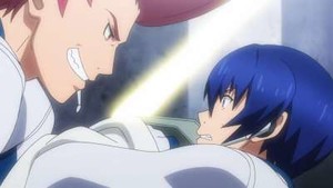 Though the concept is played almost entirely seriously, mothing about the action scenes generates much enthusiasm. The artistry, courtesy of the normally-reliable A-1 Pictures, is a major letdown, especially in the closer, and nothing about Tohru so far inspires viewers to care all that much. (And did anyone else immediately think of Effie from the Hunger Games movies upon first seeing that teacher?) A lot of the problem could be that the series has a first-time director, but whatever the case, it is going to have to do far better than this to keep its audience beyond episode 2. While not a disastrously bad opening episode, too many other shows already this season have gotten off to better starts than this one does.