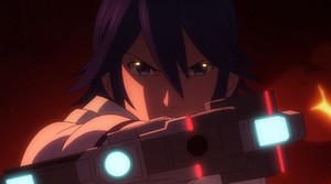 If I had to make a guess, I'd say that this is about parallel dimensions and figuring out who the “real” version is. Perhaps the Tohrus were switched at some point; that would explain First Tohru's feeling that he has a little sister. Regardless of what is actually happening, however, this first episode hops between “confusing” and “boring,” making it rather a mess. First Tohru is so bland that it is difficult to care that he's an orphan who has been classified as level D by the government, Second Tohru just appears to be a bloodthirsty loony. The backgrounds are almost textbook anime sci-fi, with screens that appear in midair via wearable tech, a classroom set up I've seen in almost every other high school-set science fiction show, and utterly bland character designs with eyes like marbles. The animation is, shall we say, less than stellar, which certainly doesn't help the fight scenes at all, a major problem when the show is based on a shooter.