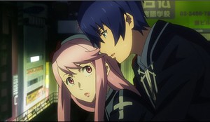 Tohru Kazasumi lives in The Future. This isn't one of the worst futures, but it is a mildly dystopian one - this future includes ranking systems that dictate your life path, which are supposed to be based on aptitude but are instead based on wealth and family name. Since Tohru doesn't have a family, he's stuck with a D rank, but he's resigned to this fate, and has accepted being a sheep. In this first episode, we learn that in spite of his unremarkableness, he's actually a very competent paintball-warrior, and that he's been having strange dreams about a mysterious little girl. When that mysterious girl shows up in his real world, he ends up being dragged along with his friend Katagiri into a strange world of explosions and neon, where he will undoubtedly find out he's got some kind of heroic destiny to fulfill.