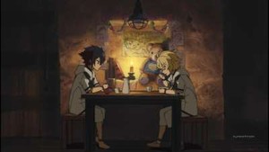So this competently-animated, crisp and beautiful show is leaning so hard on the generic Chosen One monomyth, articulating it in dialogue so blunt and direct I couldn't help but laugh most of the way through this. Yu spits out his DARK, TRAGIC PAST at Mikaela immediately upon meeting him in a flashback (his father abandoned him! His mother killed herself after calling him a demon child! WEEP FOR YUUUUU) and spends the entire rest of the episode being an enormous bummer who reaches critical brooding levels right before being told he can escape. It's never explained exactly why Yu thinks there's anything for them beyond the vampire barnyard – he knows humanity was eradicated by the disease, he was there for that (along with all of his friends - they saw it happen firsthand), so when he tells the innocent orphan children that there's a world of magical feasts and nonstop fun beyond the city gates, it rings a little hollow and moronic.