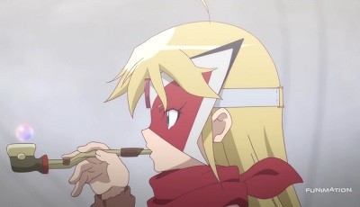 The series is fundamentally based on the original Yatterman, the second, longest, and possibly most iconic of the Time Bokan series which aired in the late 1970s. (It also saw an anime revival in 2008-2009.) Like all of the Time Bokan series, Yatterman followed a standard format: two youths (in this case a brother-sister duo) and their mechanical pet regularly battled against the villain group Dorombo, which consisted of a smart and sexy but also vain female leader, a burly guy who provided the muscle, a thin, moustached guy who provided the technical expertise, and a pig mascot, in that case over the collection of Skull Stones. The concept here is that Yatterman eventually won after a devastating war and established the glorious Yatter Kingdom, while those who opposed them were exiled to an existence in poverty. So this has remained for generations, with the current generation of Elephantus (the muscle guy's descendant), Voltkatze (the thin guy's descendant), and Dorothy (the leader's descendant) left wondering why they're still being punished for their ancestors’ wrongs. This comes to a head when Dorothy falls ill and her 9-year-old daughter Leopard, who has grown up on stories glorifying Yatterman, tries to go to the Yatter Kingdom to seek crucial medicine. She, Elephantus, and Voltkatze discover, to their dismay, that Yatterman has no intention of letting outsiders in for any reason and is quickly willing to resort to lethal violence to enforce that. Disillusioned over the death of her mother because Yatterman (or someone who seemed to be them, anyway) stopped them, Dorothy concludes that Yatterman is actually in the wrong and leads Elephantus and Voltkatze in taking up the identities of their predecessors to actively oppose the Yatter Kingdom.