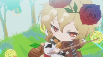 The sad truth that everyone in the audience knows where this show is going works against it pretty hard, but once you get past the laughable tone obfuscation and pregnant pacing of the whole thing, this isn't too shabby for a Madoka ripoff. For one thing, it's kind of refreshing to see a series like this not speckle its entire runtime with dark foreboding, making all its attempts at sincere emotion feel like wasted time. Sure, we know all these gals are gonna start killing each other soon, but since we're already prepared for it, why not spend the lead-up "fluff time" trying to sincerely connect with the cast? Our heroine is generic as can be, but genuinely likable as the episode gives all her little quirks and mannerisms room to breathe while she discovers her powers. Her comrades are refreshingly diverse for a magical girl roster, which is the greatest thing this show brings to the table. Since everyone's costume and name are based on their own tastes applied to a smartphone game's character creator, you have completely incongruent aesthetics between girls like Calamity Mary, Nemurin, Weiss Winterprison, and "Cranberry, Musician of the Forest" (my personal favorite, pictured above).