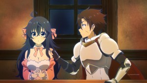 That being said, the series does put at least some effort into establishing its premise. While it's hardly an original gimmick, I actually liked the way it bases itself in grand irony: that a person who has been burned badly before by people cross-playing online suddenly discovers that he is now (arguably) the benefactor of it. I also like that this isn't a fully-immersive VR scenario; we actually get shots of what the game looks like to people playing it in addition to the “in the game” perspective shots. It also has at least a few good joke scenes, too, such as how Hideki/Rusian (I think it's actually supposed to be Lucian, so we'll see if Funimation updates its subtitles at some point) gets mobbed on in-game while his guild mates are chatting about his in-game marriage to Ako. And at least the series doesn't (yet) seem to be indulging in smarmy “meta” play.