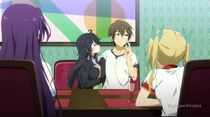 Review: Let's get the biggest negative out of the way first: this light novel adaptation is very decidedly an otaku wet dream scenario, and its first episode doesn't do anywhere near enough to rise above that level or show compelling merits beyond that. Hence anyone normally turned off by such fare is unlikely to find anything of interest here.