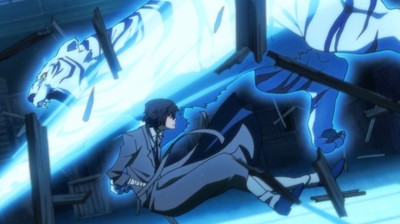 The story takes the classic starting approach of looking at an established team of super-powered individuals from the perspective of a newcomer. Not too unusually, the newcomer in this case – the orphan Atsushi – isn't even aware himself that he is a super-powered individual; he just knows that he has been kicked out of his orphanage with a deprecating barrage of words and that even before that he was haunted by a tiger. Most viewers will pick up fairly quickly on the probability that Atsushi is the tiger; he's effectively what fantasy RPG gamers would call a weretiger, since he only transforms at night and isn't aware of his actions when it happens. This episode lays out his predicament fairly well and fully introduces that “suicidal maniac” who has the power to both stop him (he can negate superhuman powers with a touch) and join the super-hero team. We don't get more than a brief appearance by the rest of his future team members, but they look like the kind of diverse lot of eccentrics that you would expect from a series like this.