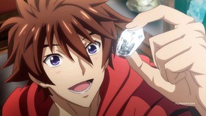 At least the series doesn't piddle around about setting up its premise. Shun loves crystals, gets transported by one to a fantasy realm where people can manifest weapons called Warp Relics, and soon discovers that he can manifest one, too. He falls in with a young prince who's trying to avenge his father against a powerful usurper and they escape the castle's dungeons together, battle a strong minion, escape again, and meet a pretty girl.