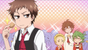 This one does at least have some potential to go beyond that, though. The byplay between Mahiru and his friends, who clearly care and worry about him, is a more natural set of dialogue exchanges than anything that appeared in KILL, and the concept has some interest factor. (Kuro is apparently not the only vampire who transforms into something small and cute when in distress.) It also has a kick-but pair of opener and closer; the former is a hyped-up heavy metal number, while the latter is more of a pop tune featuring the whole cast dancing in turn. Really, the closer in particular is worth watching even if you don't watch the rest of he episode.