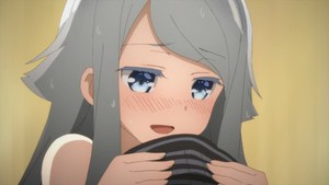 But what is the series about? That's a little less clear. I suspect that the meat of this tale is going to be the way that Itsuki's novels helped Nayu when she was facing troubles at school, ultimately inspiring her to become an author herself. Over time, her obsessive love for Itsuki has only gotten stronger, and I admit to some concern on that front—one of her last scenes in this episode has her rubbing her face on used boxers from his bathroom hamper, which is an uncomfortable callback to the opening seconds of the show. The parallel is deliberate, so it's how the story will use that parallel that may be cause for worry.