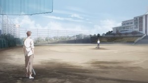 The actual narrative this episode builds slowly towards a reunion between two old forgotten friends, gracefully transitioning between seemingly idle but character-establishing sequences at school. The smart direction and clever scene transitions work hard to build up the sense of this school as a contiguous whole, and these students as a group with a wide variety of different relationships. The boy who's transferring in will be startled by a commotion in the next room, and we'll then jump to the head of the photography club making that commotion. After being told the photo club will likely be merged with the broadcast club, an idle conversation later on will give us the broadcast club's own mixed feelings about that union. Characters say goodbye and head off to the bus, only to appear rushing in the background of the next focus segment. Every scene builds on the one before in a creative and often not directly narrative way, ultimately leading to a thrilling crescendo involving two former baseball players, that hopeful young photographer, and the trumpet section of the school band.