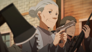 That has little to do with the actual execution of the episode and more so with its lackluster material. Kino's visit to the Country Where People Can Kill Others has all of the fable-esque qualities of a classic Journey. She and her talking motorbike Hermes visit a country with a peculiar quirk, which usually reflects some larger societal ill or struggle, and they use their time to discover the true nature of life there. Philosophical ponderings and encounters with symbolically important locals tend to follow, and at the end of the episode, Hermes will begin a conversation with “Hey Kino, I've been meaning to ask…” as the pair drive off to their next destination. All of this happens in this episode, and it looks as pretty and smooth as ever (though I prefer the original character designs myself). The only problem is that the central message of the story is somewhat muddled and not as interesting as the series' stronger material. Kino's expectations about the amount of violence in the city is initially subverted, only to be more ironically confirmed by episode's end. Kino and Hermes digest these events without much trouble or reflection, and they pass on their take to a man looking for a peaceful life in the country. Roll credits.
