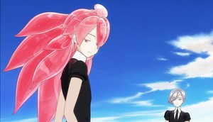 It's not just the gem people, though. The Lunarians look like something out of Hindu mythology, though their coloring exclusively matches the glow of the moon. When Cinnabar uses their special abilities, they generate CG-animated waves of mercury (because mercury is derived from cinnabar). Pastel-themed lighting effects also pop up throughout the simple but still grand architecture. I wouldn't call the overall effect dazzling, and some definitely won't care for it, but this is definitely one title you need to check out if you're looking for visually experimental anime.