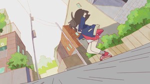 These problems are exacerbated by the show's terrible direction and confounding transitions. Urahara's shot transitions remind me of last season's A Centaur's Life, where the jerkiness and odd pacing of cuts kept me from feeling pulled in by the story. Urahara also relies heavily on superdeformed cutaways that further diminish its sense of place, constantly employing shots that partition the screen into multiple panes in a way that never feels natural. Though there are some nice visual ideas here, Urahara's aesthetic choices consistently undercut its dramatic and visual appeal.
