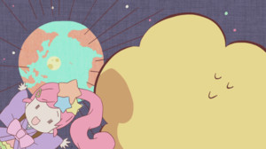 By far the biggest barrier to appreciating the series are the production values. This is about the roughest I've ever seen a full-length TV anime look. Nothing even remotely approaches looking realistic, with even famous landmarks like the gate to Takeshita Street coming off as twisted and distorted. Backgrounds are generally simply and ill-defined, characters have an early-draft roughness to them (and those ears, tails, and horns are just accessories and not natural, right?), and the show's actual details are a mind-boggling collection of knick-knacks. Coloring is uniformly bright and pale, which means that little can stand out in a good or bad way. The animation isn't bad, but I can see many viewers finding the overall aesthetic to be intolerable. I'm one of them.