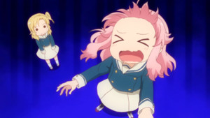 This is where we run into a problem. Kohane really can't take a hint or a firm “no,” and begins what Hizume clearly feels is a harassment campaign to try and get her to join. The fact that Hizume really does want to go back to cheer but is afraid to because she was bullied out of her old team eventually makes this more okay (kind of), but the fact that for most of the episode Kohane is basically stalking Hizume is troubling and more than a little annoying. It does lead to a couple of amusing moments, though, such as when Hizume calls Uki Kohane's “guardian” or when an old woman Kohane is helping across the street asks, “Are you a pervert, little girl?” That Kohane does eventually turn herself around and begin working on her own issues is a good sign, however, and I'm hopeful that going forward she'll mature into a less irritating character.