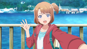 What's even more surprising is how such a zany setup can result in such a dull premiere. It takes half-the episode for Haru and Co. to finally blast off into the stars, and the preceding ten minutes consist mostly of Haru wandering around Onomichi while the other prospective space fishers just stand around and wait for the plot to start. None of the generic characters, not even Haru, have enough personality to maintain such a dialogue and exposition heavy first act solely with their introductions and banter. So much of this episode's runtime is devoted to explaining how a group of young girls, one of whom has literally zero training, can just get blasted off into space to fight giant fish with phone gods, yet by the halfway point I was more confused by what was happening in this show than when it started.