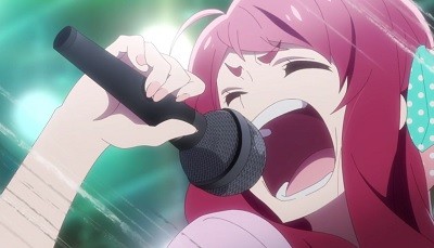 The first big gimmick is that the idols are secretly zombies, with the heroine merely being the first of the lot to “awaken” – in other words, to regain her human mind. The others just wander around being typical zombies until they awaken at the end of the episode, which should make the next episode quite “lively” indeed! Their manager uses Hollywood makeup techniques to pass them off as living, which makes their zombie-like behavior even more unusual. The second big gimmick is that they're performing at a metal venue, which they can get away with because they can head-bang with the best of them and their zombie screams are passable as heavy metal singing. Combining idols with heavy metal actually isn't so much of a stretch (see Babymetal), but I don't think it's been done quite like this before.