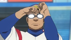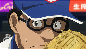 This is partly because of the decision to tell and not show. The entire episode is narrated by Bonda with almost no breaks, and when it isn't Bonda, it's Toku, so we have no real opportunities to form our own opinions of what's going on. The closest we come is when Bonda deliberately tries to catch a foul ball in order to both make himself look good and discredit a celebrated rookie player from the other team—and given that the guy who gets sent back to the minors has two small children and a wife, that doesn't make Bonda look great, even if it's meant to be a depiction of what a dog-eat-dog world pro sports can be.