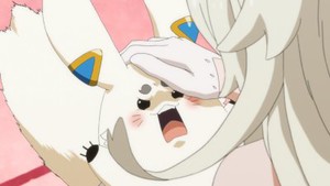 This isn't a total failure. The main villainess' look feels like a shout-out to Arsène of Milky Holmes, which is kind of fun, and I love the bright colors and character designs. I'm also pleased with the way that the subtitles try to use the greedy mayor's verbal tic as part of his lines when possible instead of just sticking “zeni” at the end of his sentences, as they do when there's no pun possible. These aspects plus the general good natured feeling of the show do make me want to like it, but the lackluster characters and storytelling aren't giving me much hope that this is going to be worth the time.
