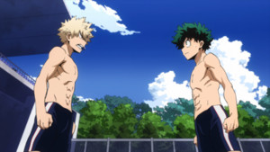 In this episode's defense, it's smart enough to pace out the tedium by alternating between old and new content. Having Deku and his classmates horse around at the school swimming pool works well as a framework for the flashbacks. It allows characters to indulge in relevant flashbacks as they run into one another, and the new content is frivolous enough that the interruptions aren't that big of a deal. Some it still feels a little forced (“Remember all those things that happened to us in chronological order?”), but I'll gladly take it over a narrated clip show.