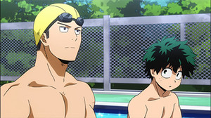 Unfortunately, it turns out those adventures will have to wait another week. The bad news is, this “first episode” is actually more of a recap episode, and not really a meaningful premiere. Though it's conveyed through the framing device of “Midoriya and his friends check out the school pool before training camp,” it's mostly just structured as an excuse to review all of the powers of Midoriya's classmates, as well as the key events of the last few seasons. There is a whole bunch of reused footage, and nothing that happens here seems consequential in any way. If “brief pool episode plus recap” doesn't sound thrilling, it seems like you could skip this episode altogether.