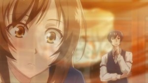 The plot of this episode is mostly concerned with introducing us to the characters and the presumptive overarching story about Holmes and Aoi going up against an antique counterfeiter. The two meet when Aoi is essentially trying to pawn off stolen goods so she can go back to Saitama to yell at her ex-boyfriend who almost immediately started dating her ex-best friend; Holmes calms her down, refuses to buy the antique wall hangings, and offers her a job at his family's antique shop. This could have been the moment when Aoi fell madly in love, but instead she seems to simply find Holmes to be a nice and interesting person, which is a good change from the norm. That's not to say that by the time the story hops ahead two weeks she isn't crushing on him, but it's clear that the relationship is going to take its time building in between working on tricky appraisals of potentially fake antiques. Right now they both seem mutually interested in a kind of vague way, so if you're looking for the romance plot, it looks like it will grow relatively organically.