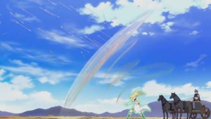 For every detail that could be listed in the episode's favor, at least one negative one also pops up. The episode attempts to imply that Yuto's use of the phalanx would have been innovative for a setting equivalent to the beginning of the Iron Age, but historically concepts similar to the phalanx existed at least as far back as the 25th century B.C. (And sorry, Yuto, but it's a real stretch to give Nobunaga any credit there even if you are Japanese.) In lieu of some explanation about them being distracted, that the archers wouldn't continue to fire at Yuto makes no sense. The petting on the head and dog analogies are a little uncomfortable, too. The sexier elements – especially the opening scene and the fan service-laden closer – can simply be attributed to standard harem hijinks; if you don't normally tolerate those then you won't find them any more tolerable than normal here. To say that the artistic effort is nothing special might even be generous; the character design quality is very ordinary and unexciting and nothing else about the visuals impresses any more than that.