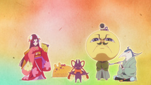 The characters here are also surprisingly engaging. Seiji and his not-blood-sister Oko make a quite functional and likable husband-and-wife-type team, but the real stars are, of course, the tsukumogami. It's not so much that they're cute, although that definitely is a factor; it's more that they all quickly show distinct, well-defined, and endearing personalities which interact quite smoothly with each other, whether it's the exasperated bat or analytical Tsukuyomi. Collectively they show an inclination to spend their time gossiping and chewing on interesting stories they encounter when being lent out or which are brought into the shop. The story also seems to be headed towards having them regularly participate in helping Seiji and Oko solve low-key mysteries involving the ordinary happenings of Edo-era Japan, such as the matter of the samurai who's unsure about an arranged marriage. This is an approach which could be milked for a long time before it gets old, especially if additional cute tsukumogami get thrown into the mix as guest appearances – and the Next Episode preview indicates that more of such fare is coming.