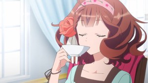 What lies between the start of this low-stakes story and seemingly wrapping it up are a series of incredibly lame jokes, delivered by characters the show seems to assume you already know and adore. There's Prince Narek, an empty-headed narcissist who spends his overlong screentime finding new ways to brag about how handsome he finds himself. There's Vino, who has no regard for personal space and so little connection to the peace-treaty-signing that he has to be introduced in a teatime scene that feels truly random in an episode where every scene feels disjointed and barely connected to anything. And then there's Teo, who just doesn't understand all these high-falutin' nobles and would rather spend time in the garden with his favorite hoe. They all roll up to flaunt their various gimmicks with a wink and a smile, as if this is a reunion episode for some sitcom I never watched, and then the episode just kinda stops after quickly establishing that Ani has to go back to Selenfalen and hang out with them again, although we have no idea why we should care about this featherweight plot buoyed by unusually tepid jokes. (Even by this genre's standards. The Royal Tutor looks like Ouran High School Host Club compared to these antics.)