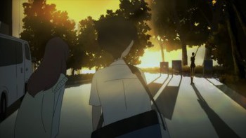 That being said, I may not watch more of this because the net artistic effect is still a negative for me, the story isn't doing anything special, and I already dislike Ryo more than I'm probably supposed to at this point. I also had to look askance at some of the weird inclusions here, like the group of rappers who seemed intent on hitting on Miki. That was a pretty bizarrely random inclusion, even though they did fill the role of “random guys who hit on the protagonist's girl.” So was Ryo just pulling a machine gun out of his coat to deal with them; seemed a silly bit of overkill, though perhaps that was the intent. Those are balanced out by some occasional other sharp scenes, and don't let it be said that Yuasa doesn't know how to make blood splatter effective.