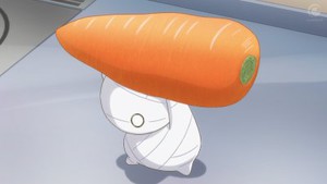 The show's appeal seems to be a very specific and yet surprisingly robust one: “keeping a tiny mummy as a pet would be pretty adorable, wouldn't it?” I didn't go into this show expecting to be sold on its tiny title character Mii-kun, but watching the young Sora's new quasi-pet, quasi-sibling attempt to be useful around the house quickly warmed my heart. This episode is full of enormously, unabashedly cutesy moments like that, where things like simply trying to get a cup of water that Mii-kun won't fall into drive adorable new setpieces. Even Mii-kun's base movements seem designed to evoke an unstoppable “aww,” as he waddles around on little twig legs and curls up in Sora's hoodie and collapses under the mighty weight of exactly one carrot.