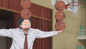 Ahiru no Sora feels like it may be kicking off a long run. Possibly that's just because I know that the ongoing manga it's based on currently has fifty volumes out, but it's also because it feels very much like a less-engaging (right now) Haikyu in its formula. High school first year Sora ticks a lot of the boxes the volleyball series' Hinata does: short, underestimated, highly skilled, and motivated to a crazy degree. There's also a bird metaphor going on, albeit one that doesn't quite work – when girls' basketball team player Madoka watches Sora play, she compares him to a duck, moving smoothly around the court as if he's diving down under the water when you least expect it. Maybe it's just me, but “ducks” aren't the first birds that come to mind when I think of swift, graceful swimmers whose moves surprise you; I'd give that honor more to cormorants. So right from the start the show seems to be engaging with a tortured metaphor that makes me a bit leery of what's to come.