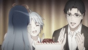 If the goal in producing AFTERLOST was to create a serious story, then I regret to report that such hopes were dashed the moment the show unveiled its cityscape of PS2-era CGI models. If you could get past that, the scene where Yuki's emotional flashbacks to her happy childhood consist entirely of her family sitting and clapping around a birthday cake might have dashed its chances instead. Mind you, these moments arrive right before she summons the ghost of a former bodyguard to summon a thousand submachine guns, Fate/stay night style, to pump lead into the spooky laser monk. It isn't just the CG modeling that looks sloppy either – the character animation ranges from mediocre to distractingly bad, and the models do not blend at all with the three-dimensional backgrounds.