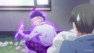 Though maybe not one of the core anime archetypes, the Misunderstood Delinquent is still common enough that it's easy to guess from the start that Kudo's fierce reputation isn't fully deserved. Flashbacks show that Kudo was indirectly responsible for his grandfather's place getting trashed in the sense that it was a targeted attack against him. Hence he's got deep regrets buried under his delinquent demeanor that he can't seem to shake. That can make for a compelling character study going forward. By comparison, Takezo is a little more typical as the insecure weakling who sees himself as a perpetual screw-up, but that also means that he's eventually going to see eye-to-eye with Kudo on that level. This potential connection shows a lot of promise, as does the dynamic of one seeking redemption and a connection to his grandfather in the club while the other sees it as a way to prove that he can overcome his own foibles. Three other characters are shown in the opener as joining the club later, but none of them have appeared yet; this episode is all about establishing the duo, as it probably should be.