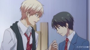 That's certainly the case in the series' opening salvo. Both of the ostensible protagonists, Takezo and Kudo, have had the instrument influence their lives. Takezo sort of fell into it; he empathized with the awful performance the club gave at his opening ceremony as a first-year and when he went to compliment them on it, the girls in the club all assumed he was coming to join. Naturally retiring and not necessarily good at saying “no,” Takezo couldn't turn them down. Now as a second-year, he's found himself in the same position they were in last year: he desperately needs new recruits. But unlike the welcoming third-years who have now graduated, Takezo isn't comfortable just asking, or even accepting, anyone who comes by. Largely this seems to be because he's become the target of three bullies, guys who have taken over his club room and threaten him physically on what seems to be a daily basis. It's because of this that he lets his prejudice blind him when a first-year does come knocking.
