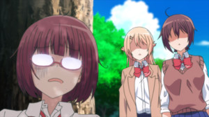 In fact, Homare doing extreme yet practical things learned from her survival training with her father, and how those actions flummox the other girls, looks like it's going to be the central running joke of the series. That Homare could probably carry this series alone is good, because aside from her, none of the other girls have shown much in the sense of interesting personalities. One seems to be the standard nerdy girl, one is an athlete, and one is an apparent airhead, but so far they're mostly just here to react to Homare. Presumably they will show more quirks and character as the series progresses.