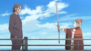Good chemistry is the backbone of any buddy-cop series, and Kei and Tilarna are well on their way to developing just that. There's definitely a standard veteran-rookie dynamic at play here, but some of the details give it an encouraging amount of depth. I'm intrigued by the idea that Kei fought in some kind of early conflict between Earth and the other world, and that backstory gives him a rationale for being unhappy with his new partner beyond the usual “grumpy old man” fare. Tilarna comes close to being excessively self-righteous and standoffish, but I get the sense she's leaning on that highborn knight routine to mask her uncertainty over being far from home with no familiar faces to rely on. Her black-and-white sense of justice is also a good foil for Kei's more pragmatic worldview, and it's clear that these two will be able to learn from one another.