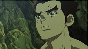 As a popular Shonen Jump manga with a very unique hook, Dr. Stone was one of my most-anticipated properties coming into this season. The story's conceit is just so novel and compelling that I couldn't not be excited - a shonen property where the engine of advancement is not training to develop physical powers, but rebuilding society altogether sounds inherently fascinating, and I was eager to see how the story turned scientific experimentation into hot-blooded drama. This first episode certainly isn't perfect, but it absolutely succeeds in capturing the inherent strength of its central idea. If Naruto is “shonen ninja world” and My Hero Academia is “shonen superhero world,” then Dr. Stone might well be “shonen scientist world.”