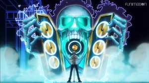 On the good side, the “rap battles” (you can't really call them battles when the bad guys are not shown doing anything themselves) are eye-popping visual displays of the most garish magnitude possible. They are explosions of colors and elaborate design elements like nothing I've seen before in anime; my favorite was probably the skeletal-themed speaker bank. These scenes carry such amazing visual impact that they almost overwhelm all other considerations. As for the actual rapping? Well. . . they tried. Some of it was passable, but some of it was truly awful.