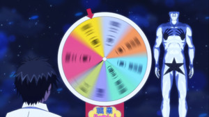 Perhaps it's because, for all his misanthropy and dislike of modern Tokyo and its society, Yosuke doesn't wallow in his hatred, and actually gets along pretty well with Shindou and Hakozaki. Maybe it's the weirdness of the gamemaster, a mannequin with half a head, handprints over his nipples, and stars over his crotch. Maybe it's because the girls' costumes are actually pretty cute. Maybe it's because Yosuke was neither constantly beaten down nor sailing through his second life with a doofy grin, but experienced both highs and lows.