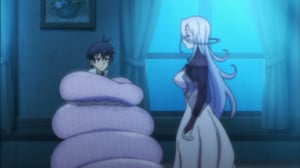 Do you like monster girls? If so you've probably already watched this episode, and almost certainly read all of the light novels before this came out. If not, well, there's not much for you here. As somebody who's not interested in treating the Monster Manual like a Playboy, I came away from this premiere pretty cold. Which is a shame, because despite my lack of pre-existing affection for the subgenre, I was actually hoping there would be something interesting to see here. No, not like that. I know what you're think from the review image but no.