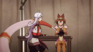 That snake part is actually one of the more glaring problems with this premiere – any time her tail moves without the rest of Saphee on screen it's obviously and awkward CGI, and that's emblematic of this episode's lackluster animation. Outside of a couple of (ahem) money shots everything here moves stiffly or not at all. I imagine it was especially taxing trying to feature multiple centaurs with how infamously difficult horses are to animate, but it's a problem for characters of every species. It's not terrible, but it hampers any attempts at comedy or cheesecake. Combined with the knightly blond centaur and amorous naga it makes the whole affair feel like an off-brand Monster Musume without any of the charm.