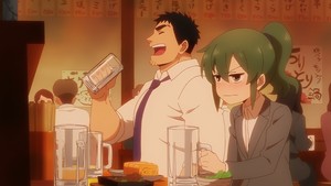 Of course, through this mistake and the process of rectifying it, we are able to see why Futaba secretly likes her senpai, Takeda—despite him often tussling her hair. She likes both his hardworking spirit and his nonchalant kindness. However, that he seems to see her as more daughter than prospective wife clearly hits her right in the insecurities. Will her drunken confession help transform their relationship into something new? We'll just have to see next week.
