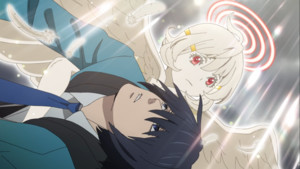 That's right, folks: For all of Platinum End's attempts to flail vaguely in the general direction of human emotions, it's really just a reskinned Future Diary. Also, for all of the criticisms you could easily throw at Future Diary's, I at least recall that show making an attempt at being stylish. Takeshi Obata has never been my favorite artist, but even a casual Googling of the Platinum End manga gives me the impression that the source material might have something going for it, visually speaking. This? This is just the animated equivalent of plain, room-temperature mashed potatoes. Nasse is the most underwhelming angelic figure I can recall from recent memory, since her janky-looking ass-cheeks are maybe the single notable thing about her design.