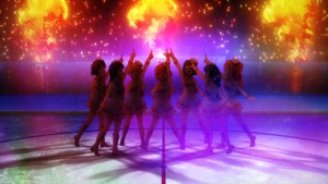 Now, I suppose I wouldn't be surprised by something akin to an end zone dance like we sometimes see in football. Sure, it'd be pretty crappy on a sportsmanship level but it'd give these girls some serious personality if they were to rub their victory in the faces of the losers like that. And then I saw them in full idol group gear, singing and dancing on the ice. To be clear, the big shock here wasn't that this scene happened—it was the fact that this somehow wasn't a dream or delusion. They were really doing a fully choreographed pop song on the ice (without skates on, mind you). This is what we're in for apparently: an idol anime mixed with a sports anime.