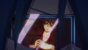 Or at least, that's my understanding based on this episode. Our hapless protagonist Kudo lives in a hellish alternate Japan where things like “escapism” are broadly banned, resulting in a nation that somehow never reached the current Reiwa era, although how those two things are related is at this point unexplained. Kudo, who works at a host club despite possibly being 17, is present when a raid goes down, and as he's escaping, he finds an unpiloted mech, complete with VR headset, controller, and “battery girl.” That last, who functions as both the ship's power source and its mascot character, needs him to be all fired up about fighting in a super-suit and making the world a better place, and if he can drum up that enthusiasm by recalling a childhood favorite anime, so much the better, because then they can relate to each other. Honestly, it makes about as much sense as anything in this episode, which feels largely like a series of ideas just sort of strung together without a whole lot of thought as to what the end product will sound like.
