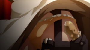 This show is the kind of classy that not only opens with a villain who's auctioning off young teenage girls to a room full of masked middle aged and older men, but also that shows you two of those girls' butt cracks before you ever see their faces. After that, the repeated shots of the assassin maid's butter- yellow underwear as she reaches for a concealed weapon feels like small potatoes; if nothing else, it's at least more familiar fanservice of the sort you can just sort of brush off. And I do have to say that it's a better, or at least more interesting, start to the story than the source novel, which I found irredeemably dull.