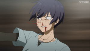 Despite the complete lack of any real atmosphere, the episode's technical merits are pretty strong. The animation is fluid and glossy, and the characters have a great range of facial expressions, especially Hiro. Daiki Yamashita's performance as the hero also merits calling out – some of the noises Hiro makes as he's punched in the face or fleeing in horror are organically crunchy and really sell the moment.