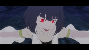 I think a big cause for this would have to be the obtuse character writing. I mean there's ambitious, and there's intelligent, and then there is whatever it is MARS RED was up to here with its script, which didn't quite possess enough of either of those qualities for my liking. All of the setup done to establish our hero Maeda, and his eventual placement as the leader of the Code Zero squad of vampire hunters, feels too dry and detached from the episode's central case. Speaking of, the story of the actress who is killed by a falling prop, only to be revived as a vampire that can only recite arch monologues from Oscar Wilde's Salomé , is something that I suspect works a lot better on paper than in practice — I started watching the show in English, only to find the constant recitation of grim exposition and Wildean drama a bit too much for my ears, though the show didn't fare much better in Japanese, either. The emotional connection between Maeda and the doomed vampiress is vague and unconvincing, and the procedural aspect of the investigation amounts to a lot of wheel-spinning before the climax begins more or less of its own volition. The Defrott character seems like an interesting addition to the mix, though they don't get to do much other than pontificate on the sidelines while the plot strides ever along.